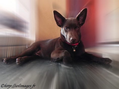 Hogan : Sphinx, parti trop tôt, est toujours dans mon cœur, mais la vie continue. J'ai été séduite par les qualités du kelpie (vrai Berger australien). Tout ce que j'ai pu lire sur lui m'a poussé à en savoir un peu plus et, après avoir visité plusieurs sites et vu plusieurs films (les élevages sont rares en France), j'ai été séduite par Hogan (Hopkins de l'élevage Spinefly dans l'Essonne). Enfin, en ce mois d'août 2012, nous avons parcouru près de 2 000 km aller/retour pour aller le chercher et après l'accueil très chaleureux de l'éleveuse Magali, d'Aurélie et de Stella, nous voici de retour à la maison. Hogan est propre, parfaitement à l'aise, bien dans sa tête, pas dépaysé. Il est né le 17 mai 2012, comprend déjà la significations de quelques mots (merci Magali), bref, il est adorable. Il nous a malheureusement quitté le 6 avril 2024 suite à des calculs dans la vessie, non détectés à temps.