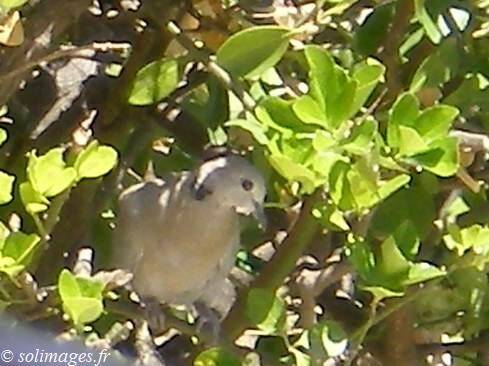 7 juillet 2008 : Elle ne roucoule pas et pousse de temps en temps un petit sifflement. Elle ne cherche pas vraiment à s'envoler, mais commence à gonfler ses plumes si elle se croit en danger. Il n'est pas sûr qu'elle y voit bien du côté gauche.