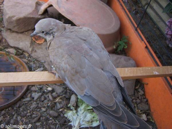 Des graines et de l'eau sont toujours à sa disposition, d'autres tourterelles sont venues picorer.